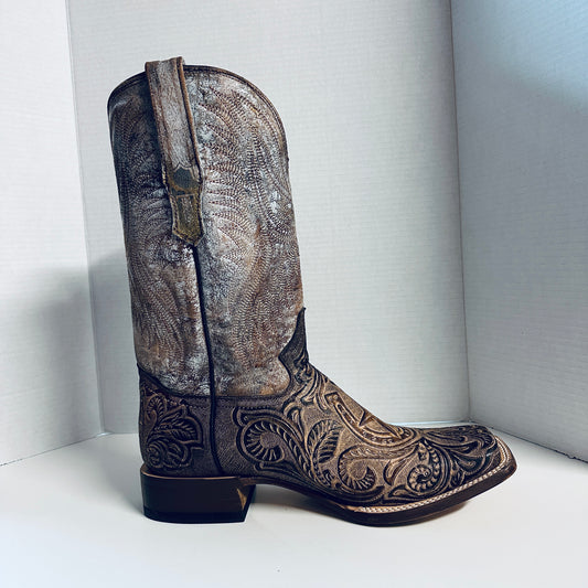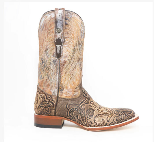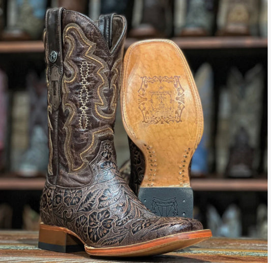 Tanner Mark Men's Gentry Hand Tooled Square Toe Boots Mocha -TM205542