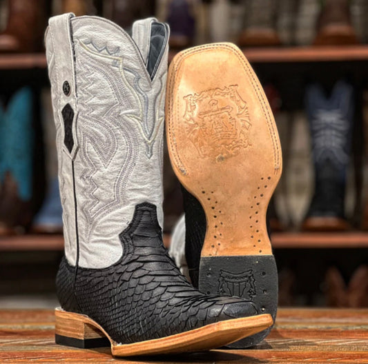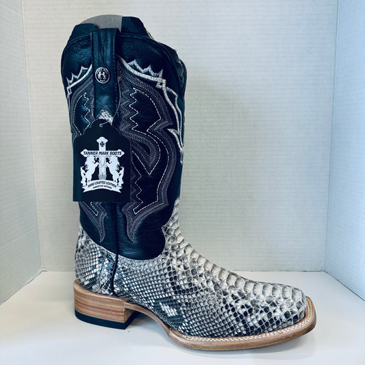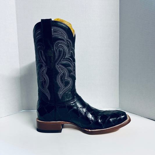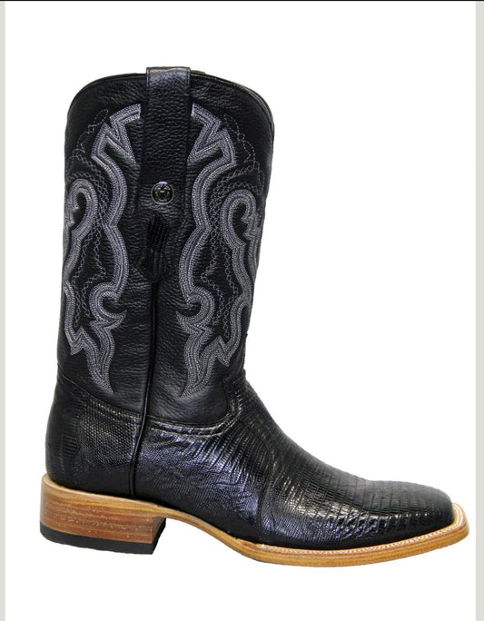 TANNER MARK Genuine Lizard Lather Square Toe Boots Black -TMX200438
