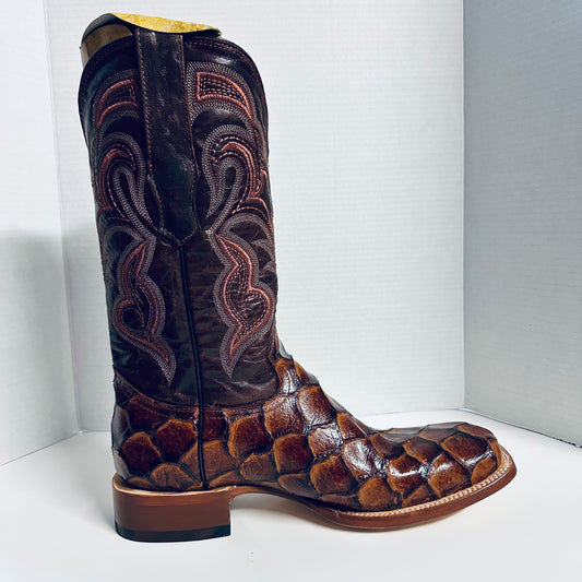 Tanner Mark Men's Print Monster Fish Square Toe Boots Cognac - TM201715