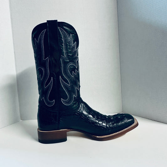 Tanner Mark Men's Print Caiman Hornback Square Toe Boots Black - TM201702