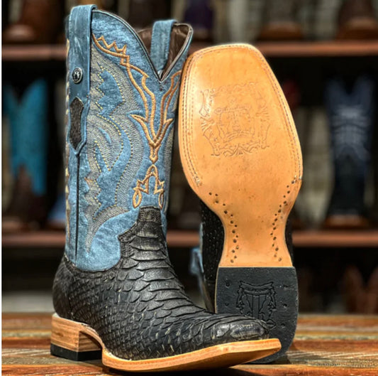 Tanner Mark Genuine Python Matte Brown Wide Square Boots - TMX208119