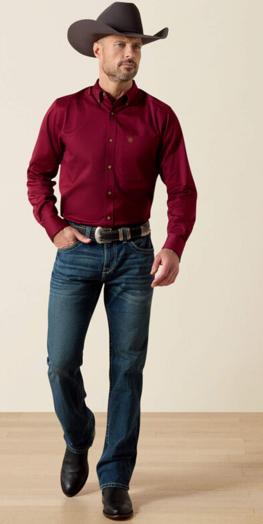 Ariat Men Burgundy Solid Twill Fitted Shirt 10034226