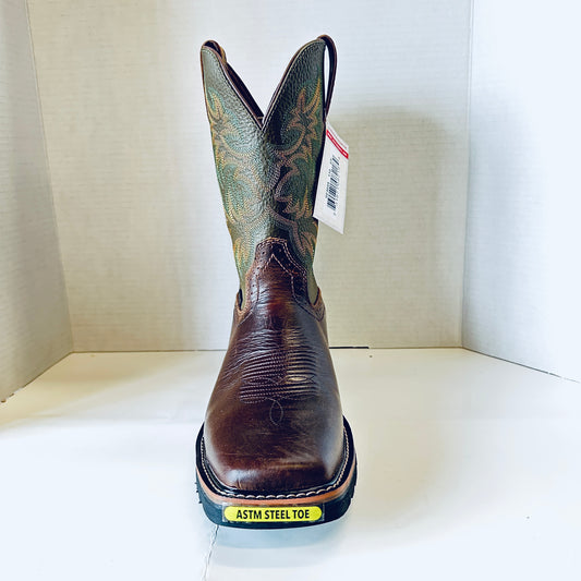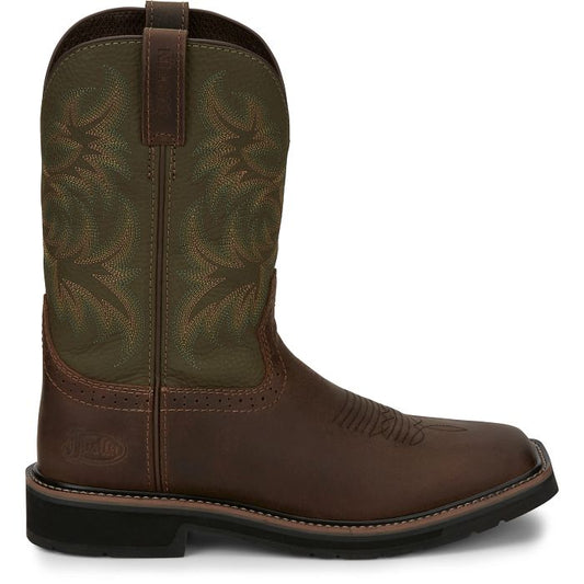 JUSTIN DRILLER 11" STEEL TOE WORK BOOT Brown / Green - SE4688