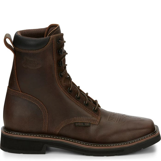 JUSTIN PULLEY 8" STEEL TOE LACE-UP WORK BOOT Aged Bark- SE682